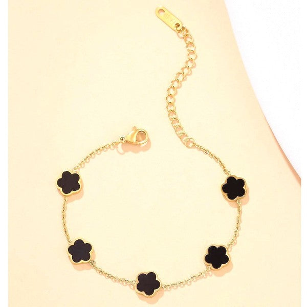 5 Leaf Clover Stainless Steel Link Chain Bracelet