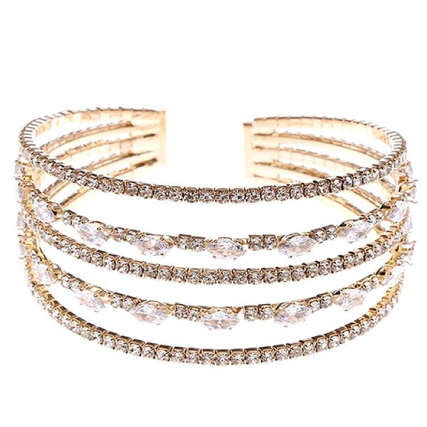 Marquise Oval w Wide Lines CZ Spring Wrap Bracelet