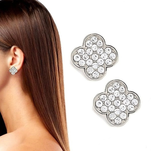 - These stud earrings feature a beautiful clover design adorned with rhinestones and faux pearls, making them versatile for both casual and dressier outfits.