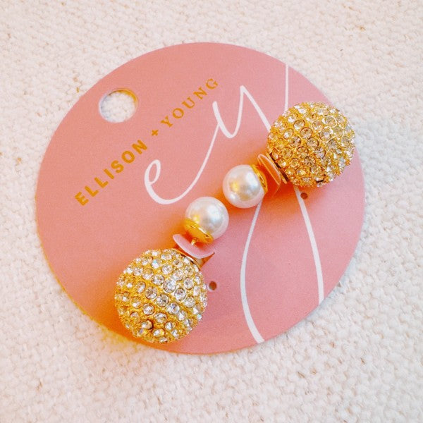 Disco Ball With Pearl Back Earrings